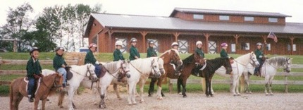 We are celebrating 15+ years of camp at Erin Meadows Farm. Camp is held Mon-Fri. Our mission is to teach life skills through riding. We develop confidence, co-operation, coordination, and commitment. Our teachers are selected to be role models with patience and understanding. Many are college students studying equine management or education. Our Camp Director has a Masters Degree in Education. Curriculum is age appropriate and student centered. We focus on individual instruction. Our horses and ponies are selected for size and temperament, and of course it helps to be cute. We can offer a unique camp experience if it is your first week of camp or a returning camper. Individual and small group learning centers create an ideal setting for growth.